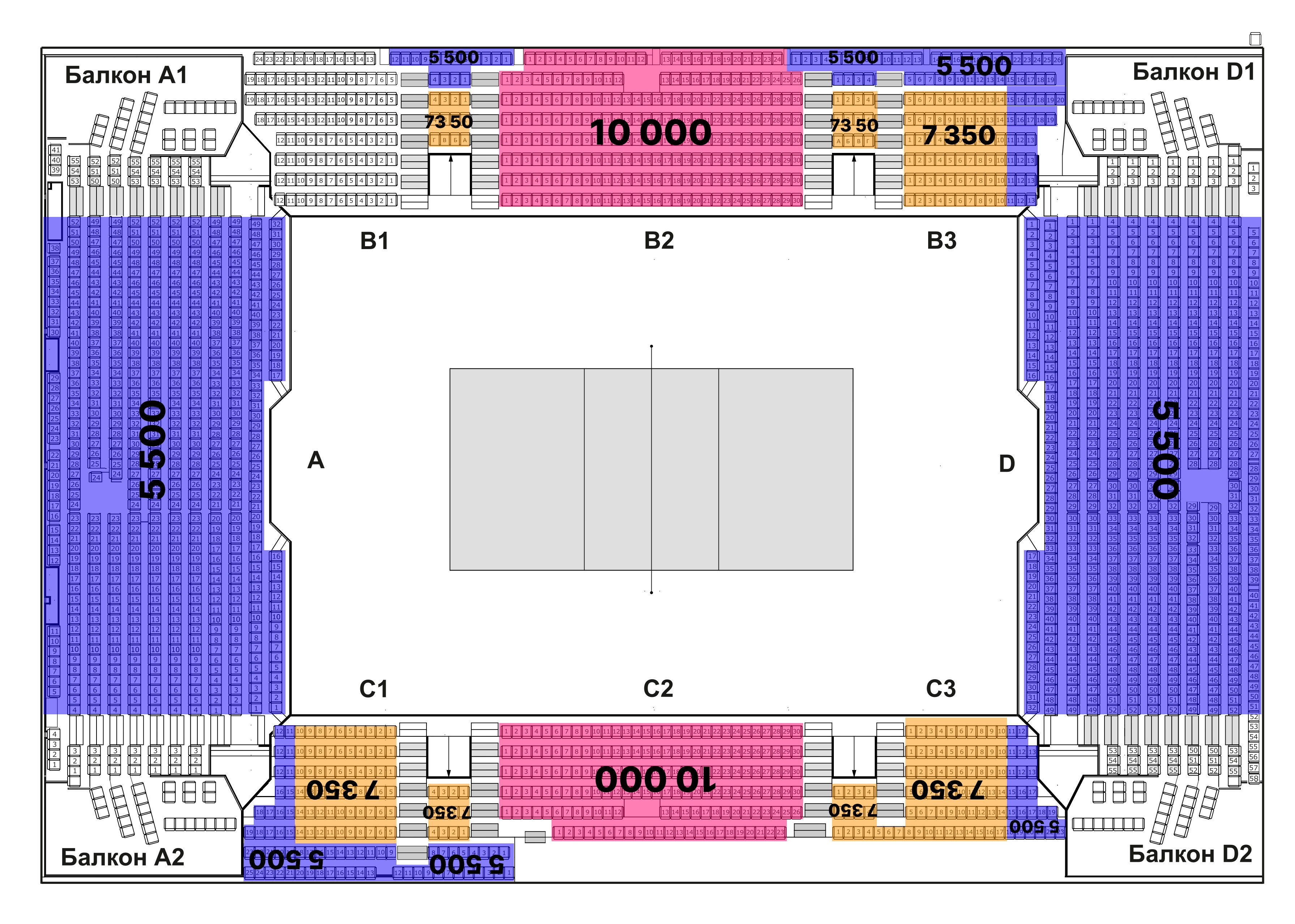 Стоимость абонемента от 5500 до 10 000 рублей в зависимости от сектора.